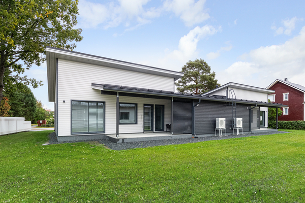 Uusi juuri valmistunut tasokas paritalokolmio omalla tontilla Kalaholmassa.