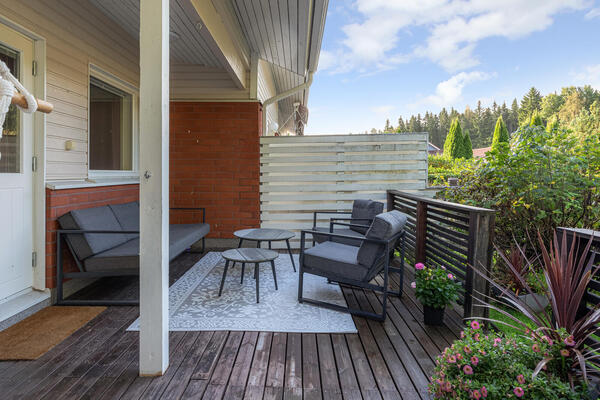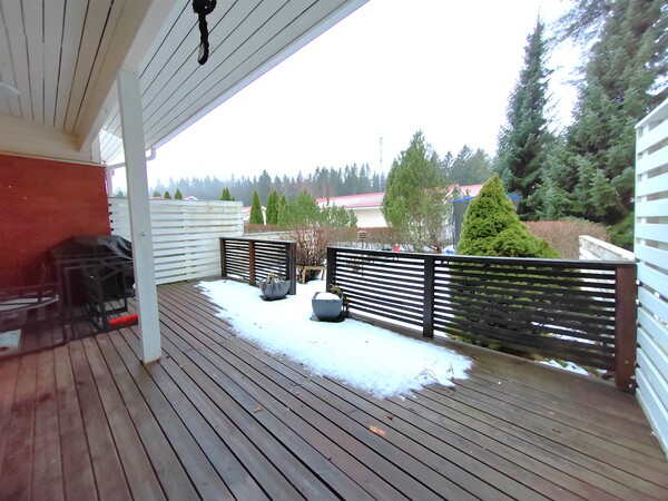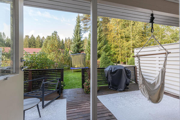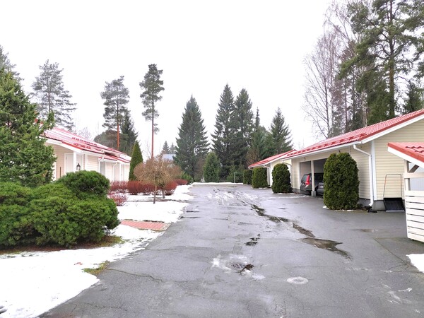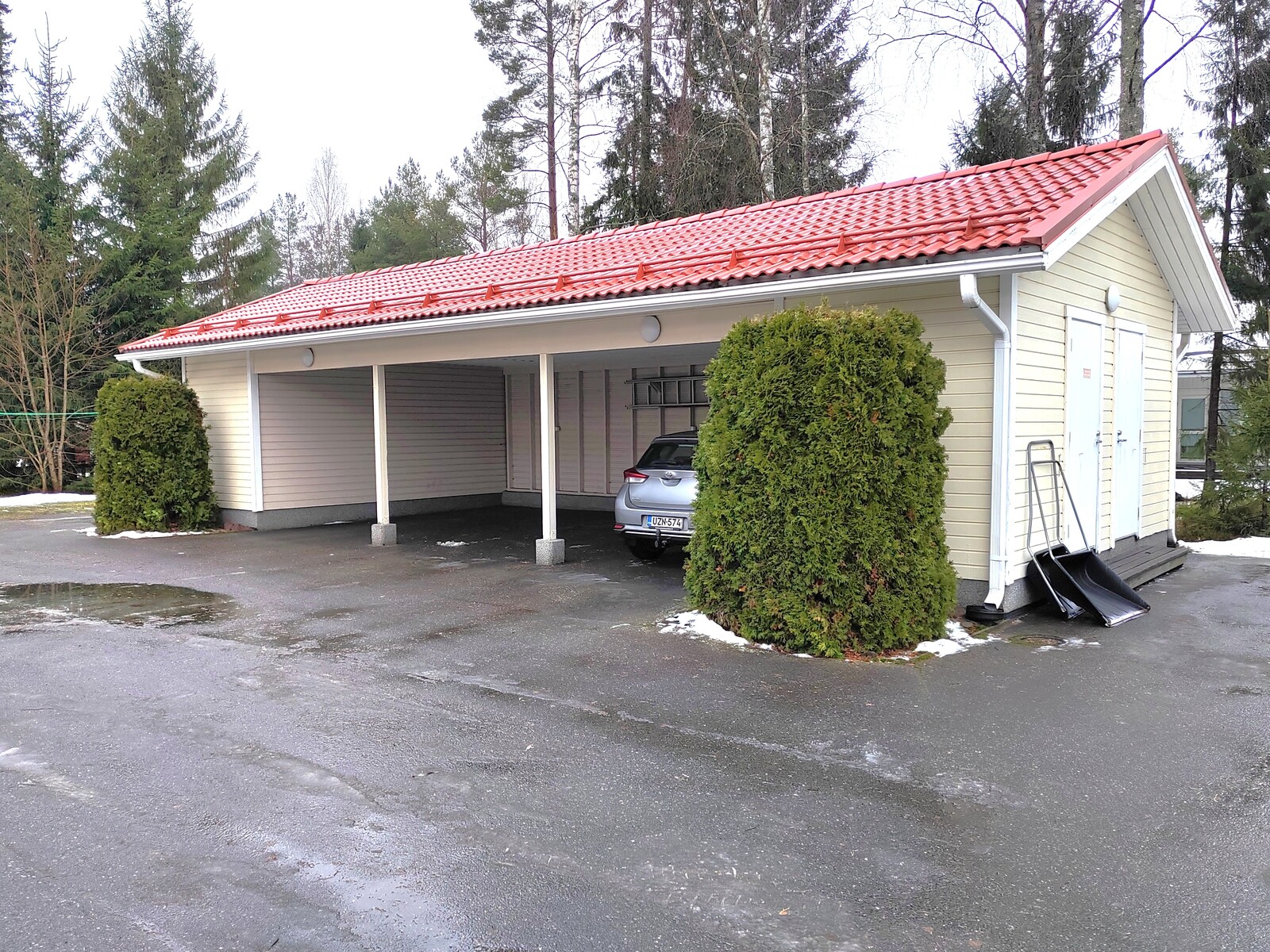 Suojaisa piha-alue kutsuu viihtymään, ja oma autokatospaikka tekee arjesta vaivatonta.