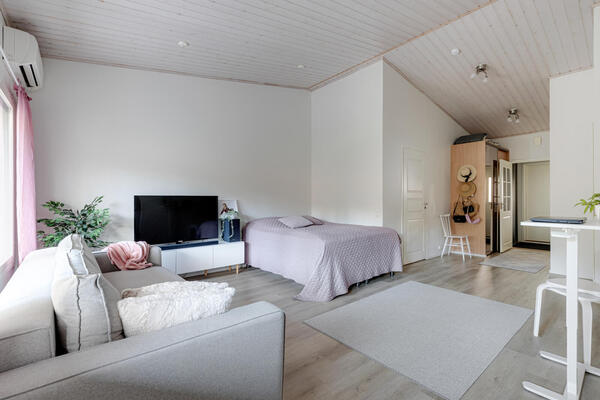 V. 2004 valmistuneessa yhtiössä sijaitseva koti tarjoaa toimivan pohjaratkaisun, olohuone ja keittiö muodostavat mukavan yhtenäisen oleskelutilan, makuuhuone on tilava ja lisäksi arkea helpottavat erillinen kodinhoitohuone, pesuhuone/ wc saunatiloineen sekä lisäksi erillinen wc.