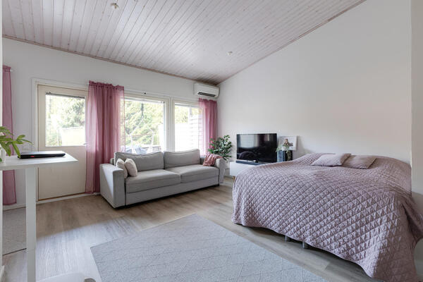 Sisätilojen tunnelmaa tuo harjan suuntainen sisäkatto, joka antaa avaruutta ja valoa. Asunnossa on sähkölämmitys ja ilmalämpöpumppu tuomaan energiatehokasta lämpöä ja viilennystä. Säilytystilaa löytyy runsaasti niin sisältä kuin ulkovarastoistakin-käytössä on sekä lämmin että kylmä varasto.