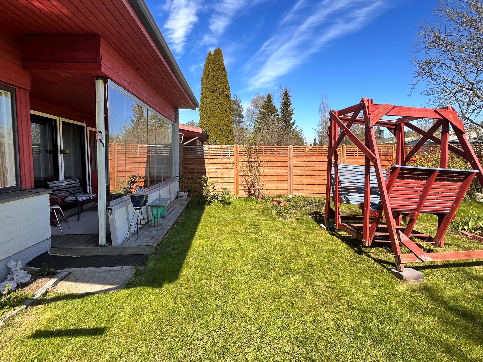Oma suojaisa tontti, jonne mahtuu trampoliini ja marjapensaita!