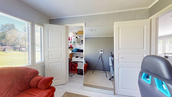 Iso eteinen, johon saa säilytyskalusteilla hyvät tilat vaikka harrastusvälineille tai rouvan kengille..