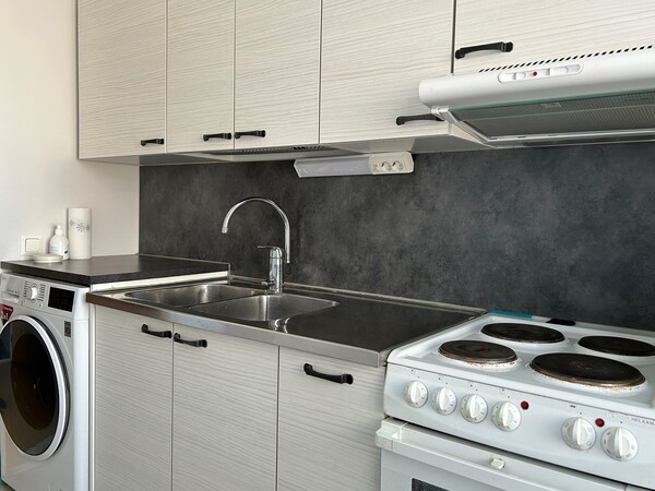 Keittiö on uusittu vuonna 2018, mutta kuten hinnasta voi päätellä, paljon on ihan alkuperäistäkin jäljellä..