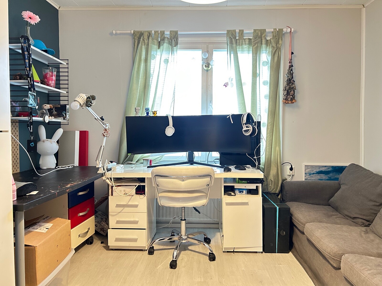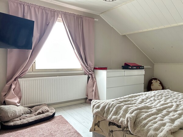 Alakerrassa on yksi makuuhuone ja yläkerrassa on yksi makuuhuone (kylläkin iso!).