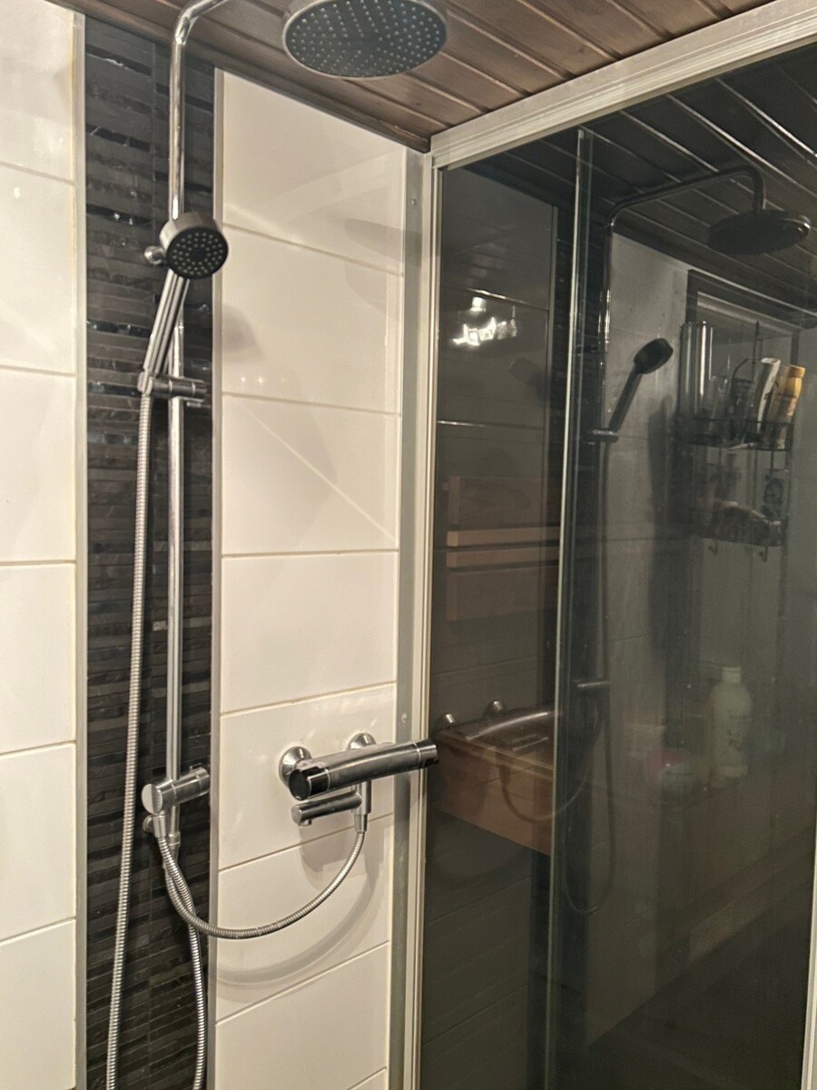 Molemmissa kerroksissa on vessat ja yläkerrassa on sauna ja pesuhuone.