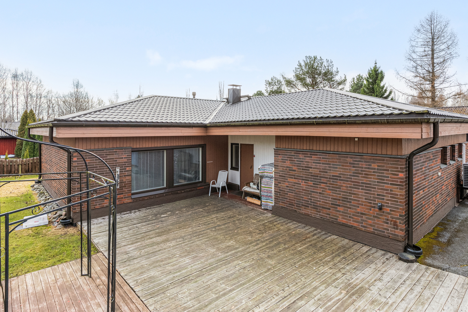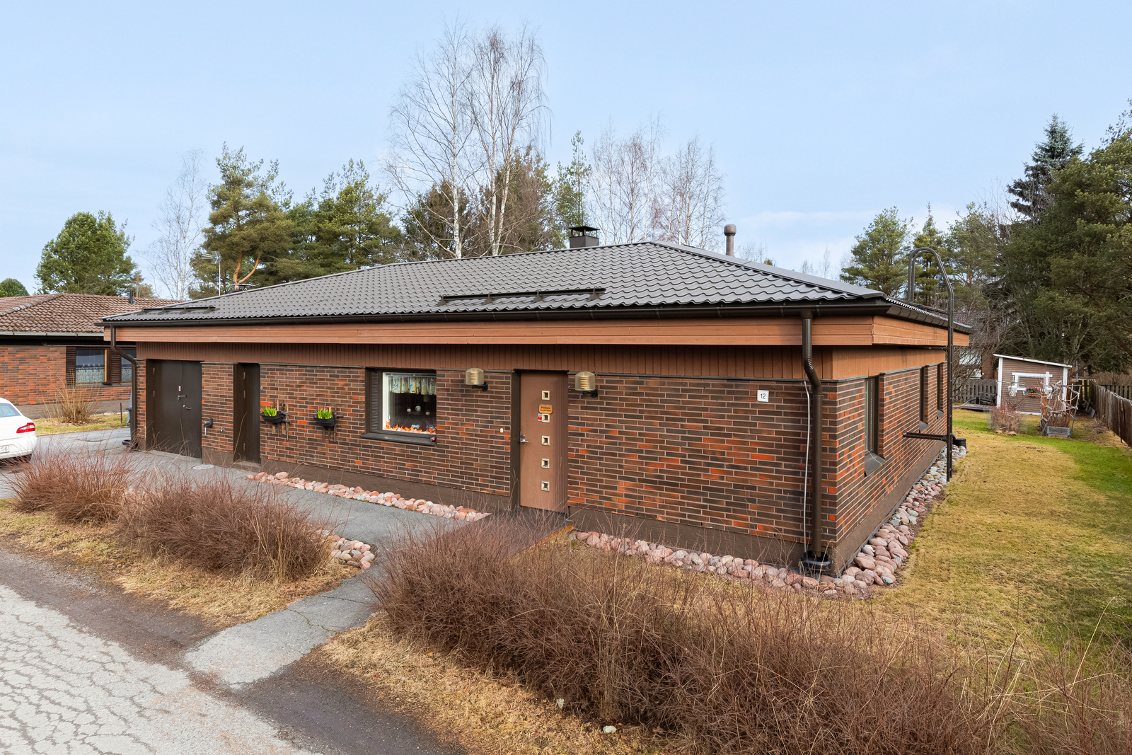 Tämä tiiliverhoiltu, vuonna 1982 valmistunut koti sijaitsee omalla 916 m² tontilla ja tarjoaa turvallista sekä helppohoitoista asumista pitkäksi aikaa eteenpäin. Talossa on tehty runsaasti merkittäviä remontteja, jotka lisäävät asumismukavuutta ja vähentävät tulevia huolia.