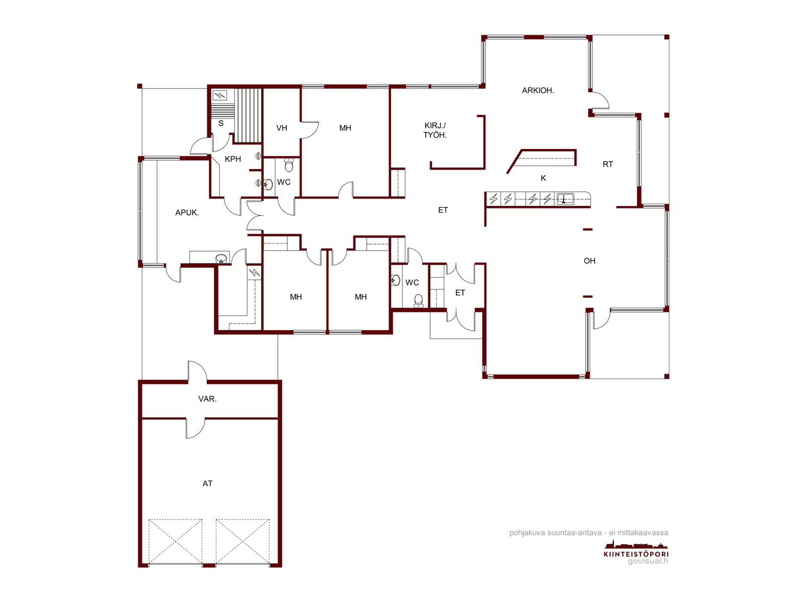 Oh,k,takkah.työh,3mh,khh,ph,s,2wc,+2 auton talliAsuinpinta-ala