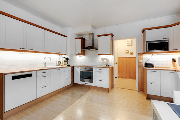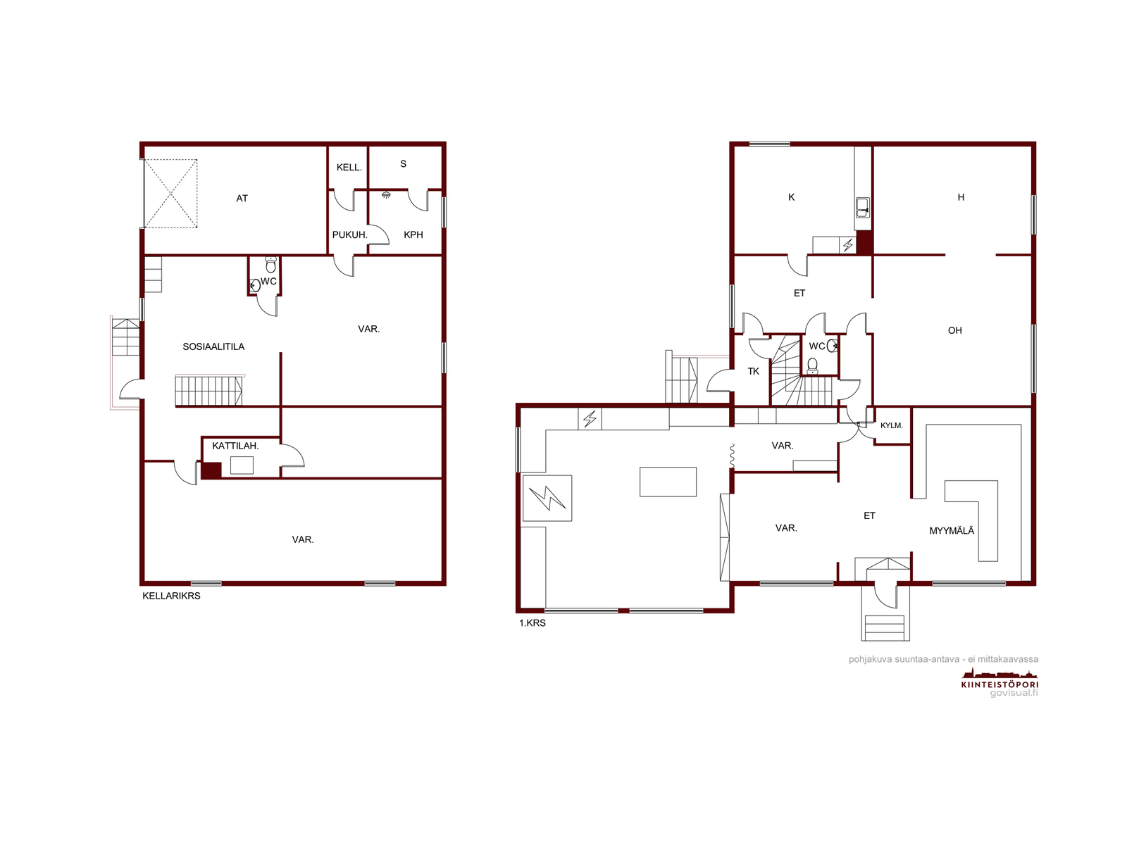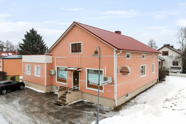 | Lisätietoja pinta-alasta | Asunto 1 : 3h,k,alkovi,vh,kph, wc, sauna,p n 124m2 ja asunto 2 1h,kk,kph, makuualkovi n 37m2. Liiketila noin 100m2. + kellaritilat, jossa varastotilaa, autotalli ja sauna. Pinta-alatiedot ovat ohjeellisia ja saattavat poiketa oleellisesti suuntaan tai toiseen. |