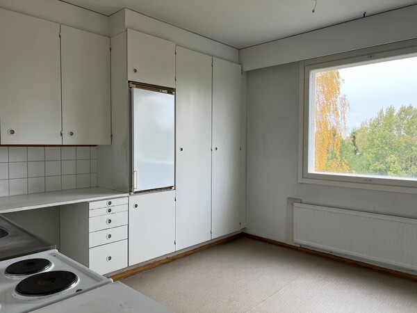 1970 -luvun talon asunnossa on isot huoneet ja vaatehuone on iso plussa!
