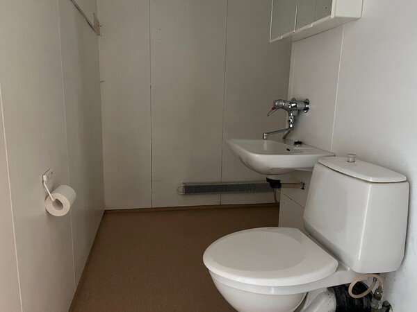 Kylpyhuoneeseen mahtuu pesukone, mutta alakerrassa on myös pesutupa käytössä.