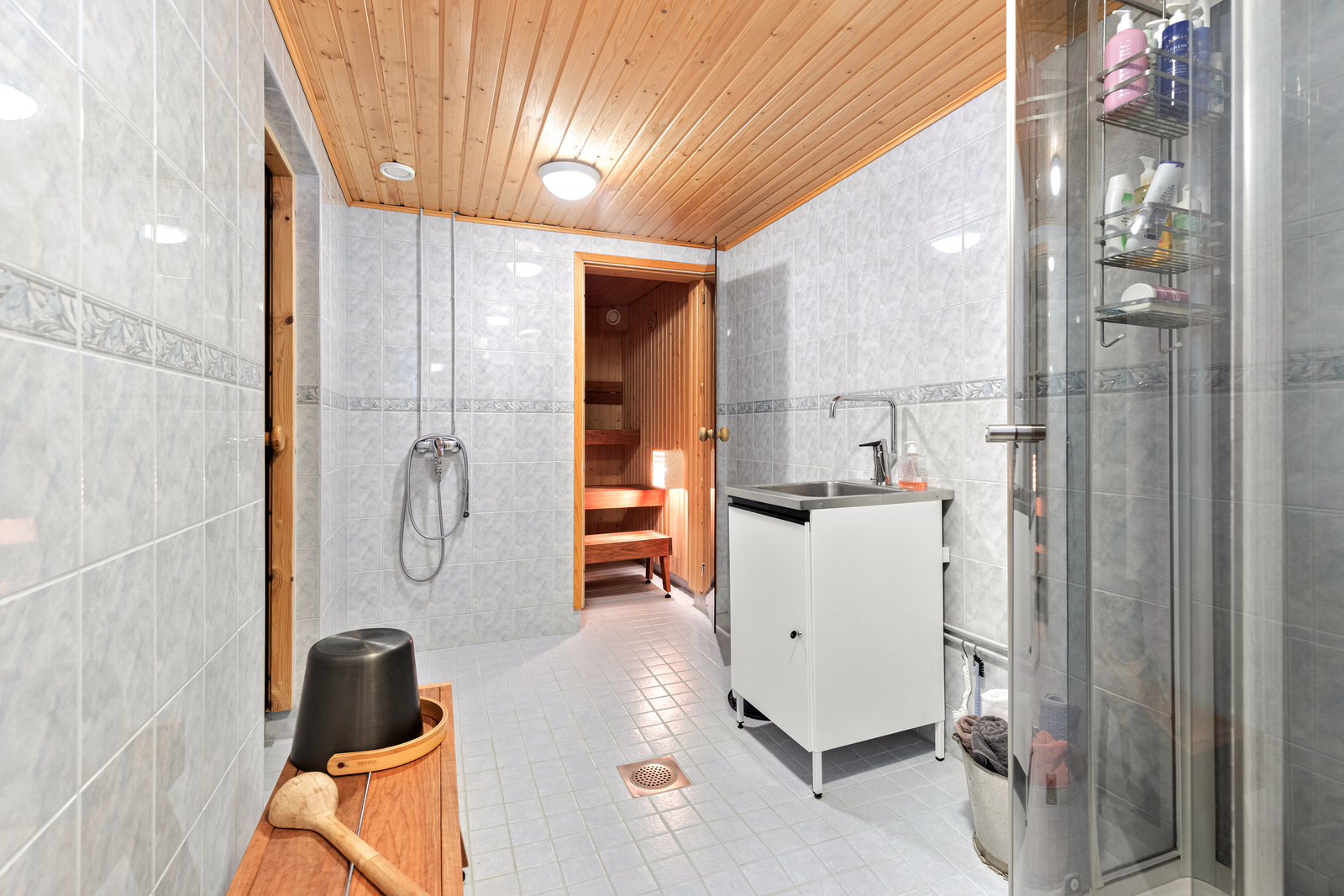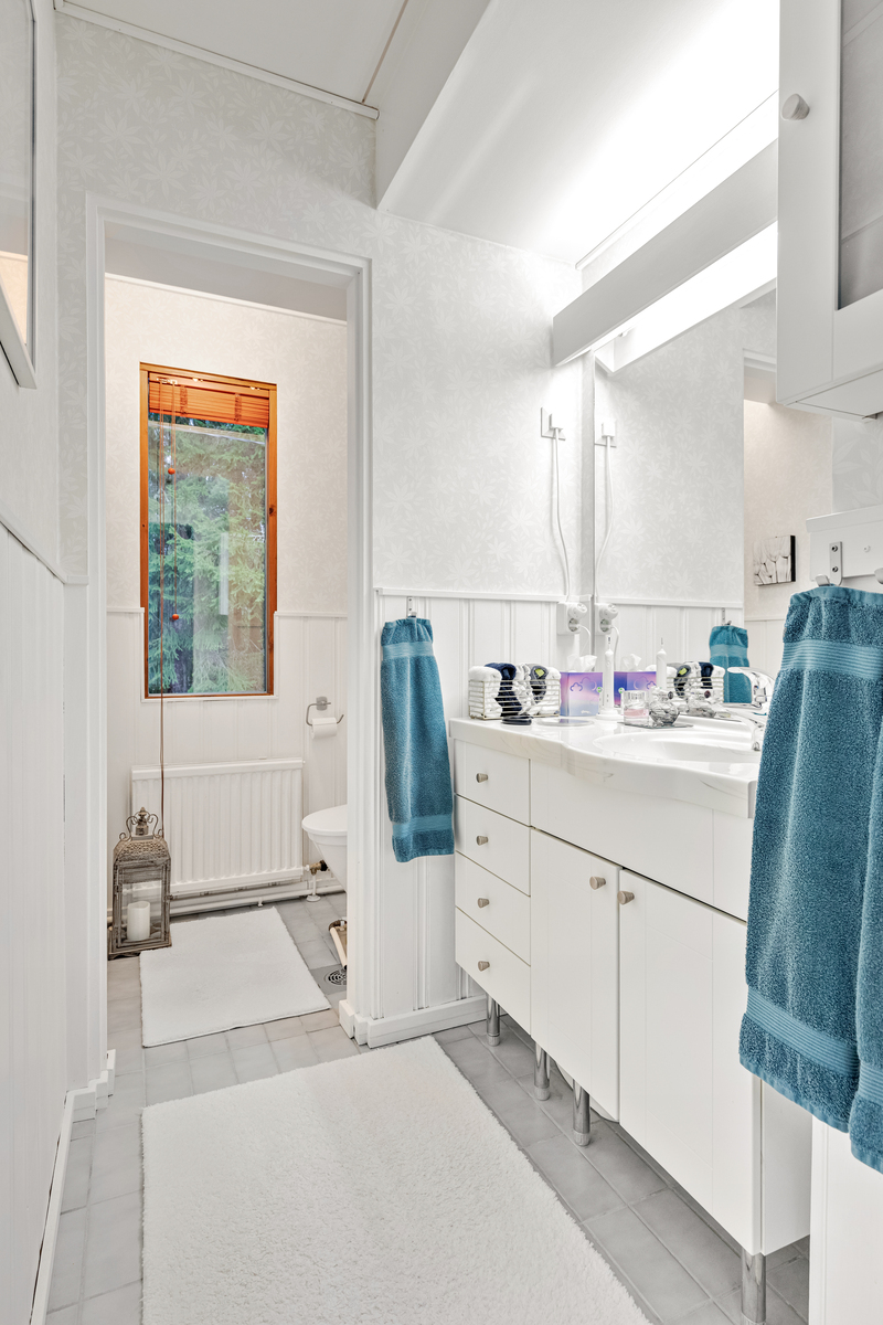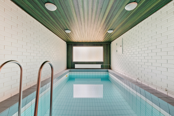 Tilat jakautuvat toimivasti kahteen tasoon, ja käytännöllisyyttä arkeen tuovat mm. uima-allas ja viihtyisä saunaosasto. Koneellinen ilmanvaihto lämmön talteenotolla lisää asumismukavuutta ja energiatehokkuutta.