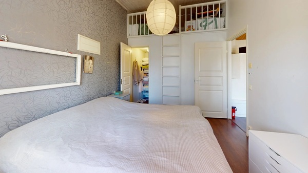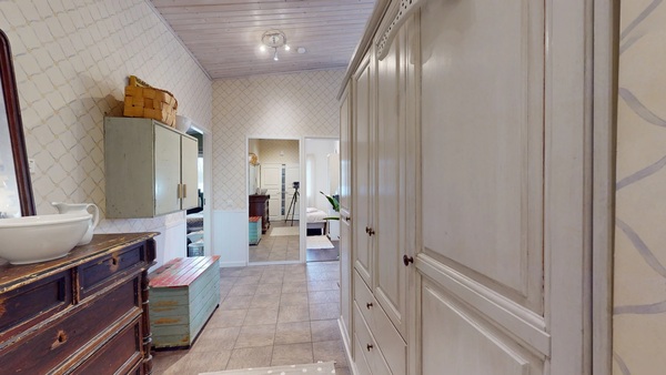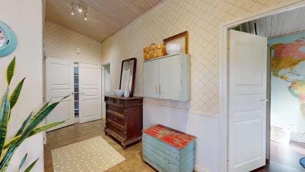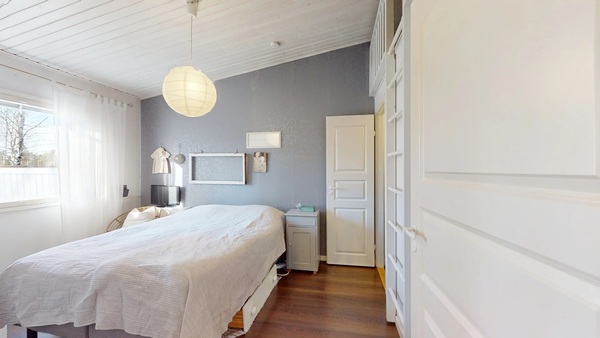 Yhdessä makuuhuoneessa on vaatehuone ja sen yläpuolella on käytännöllinen parvi.
