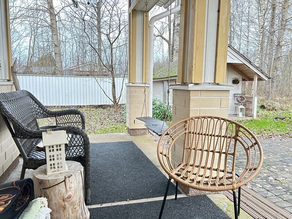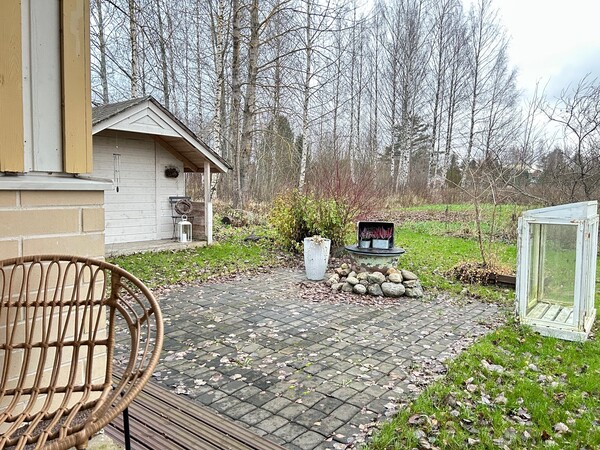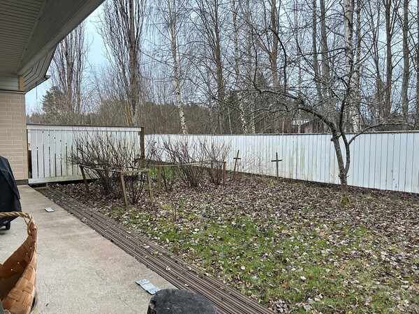 Koska asunto sijaitsee "ällän muotoisen" rivitalon kulmassa, takapihaa on länteen ja etelään päin. Siellä on jo valmiina marjapensaita, varasto ja omaa rauhaa!