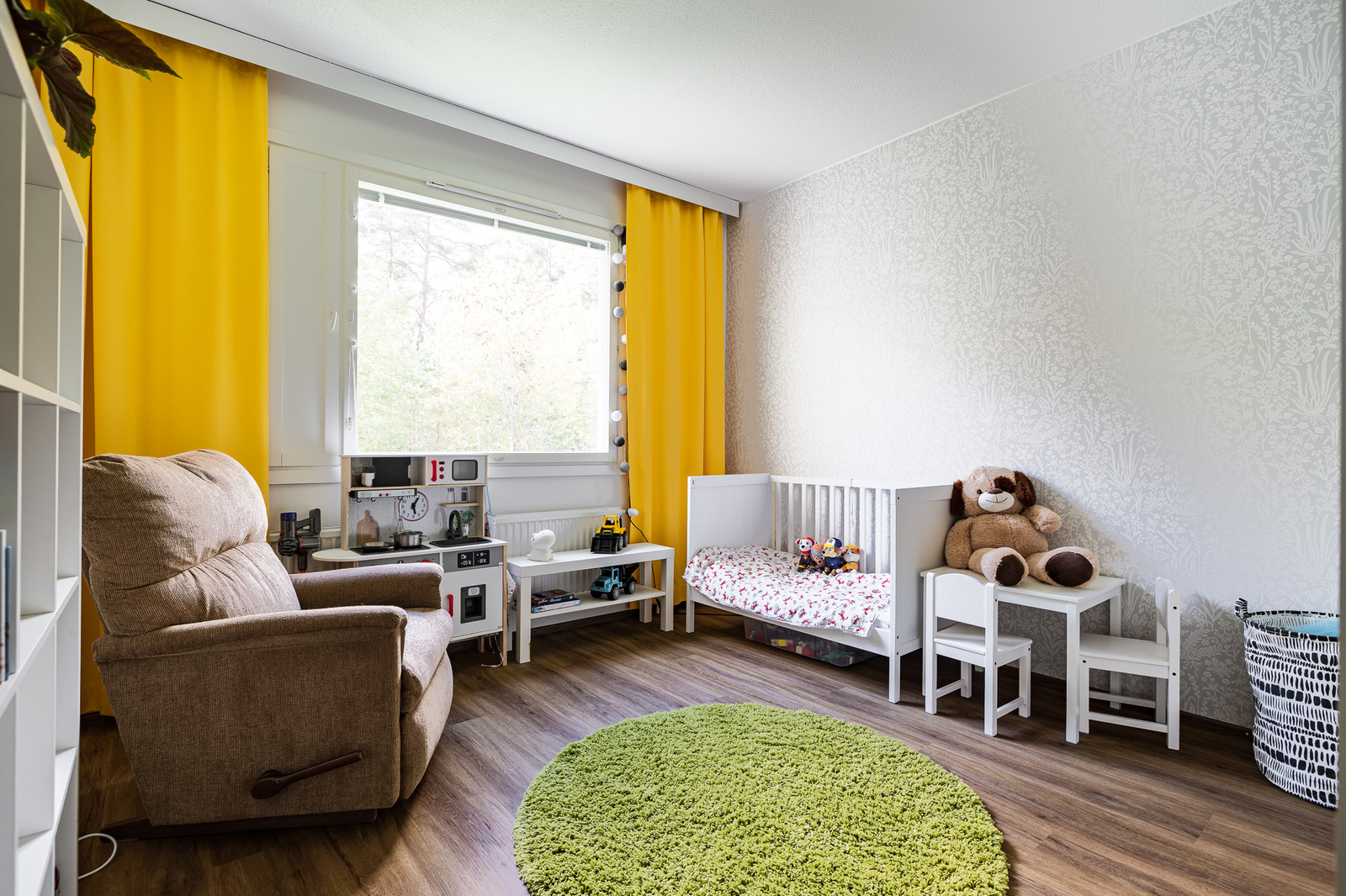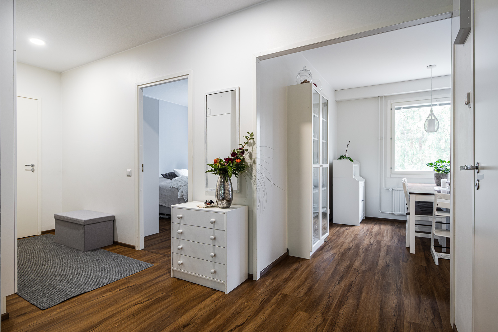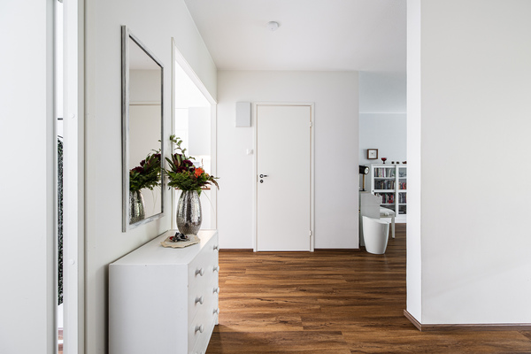 Tässä ensimmäisen kerroksen, 79m² kolmiossa on kaksi tilavaa makuuhuonetta. Upea Kodikas Keittiön keittiö ja kylpyhuonekin on aivan viimeisen päälle. Olohuoneesta ja lasitetulta parvekkeelta avautuu metsäiset maisemat. Asunnossa on hyvin kaappitilaa sekä lisäksi löytyy myös erillinen vaatehuone.
