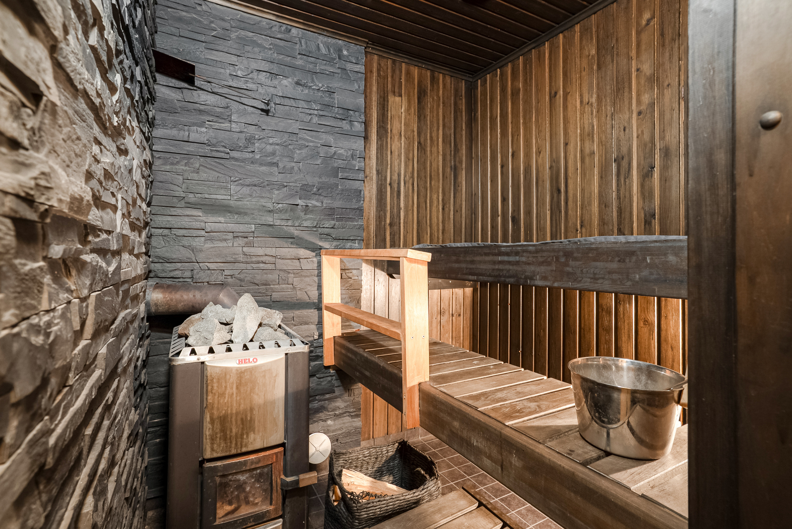 Olohuoneen tunnelmaa ja asumismukavuutta lisää varaava takka, joka tuo lämpöä ja säästöä lämmityskuluihin. Lisäksi ilmalämpöpumppu auttaa pitämään sisälämpötilan miellyttävänä ympäri vuoden. Oman saunan puukiuas tarjoaa aidot ja pehmeät löylyt rentoutumiseen.