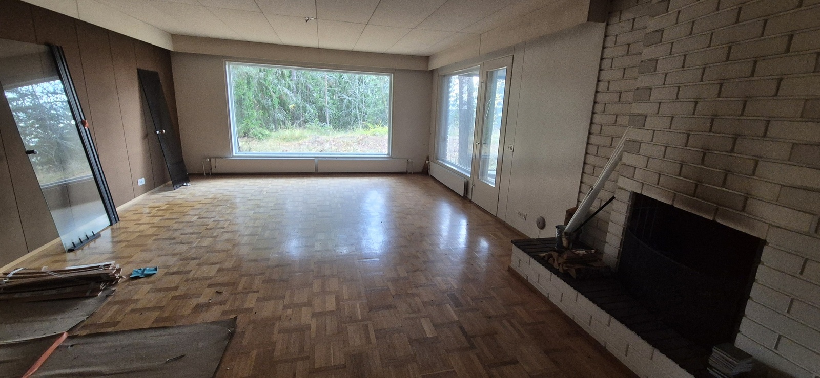 Kauniilla kallioisella paikalla Hyvelässä iso omakotitalo, joka vaatii peruskorjausta. Lattiat osittain purettu ja eristeet poistettu.