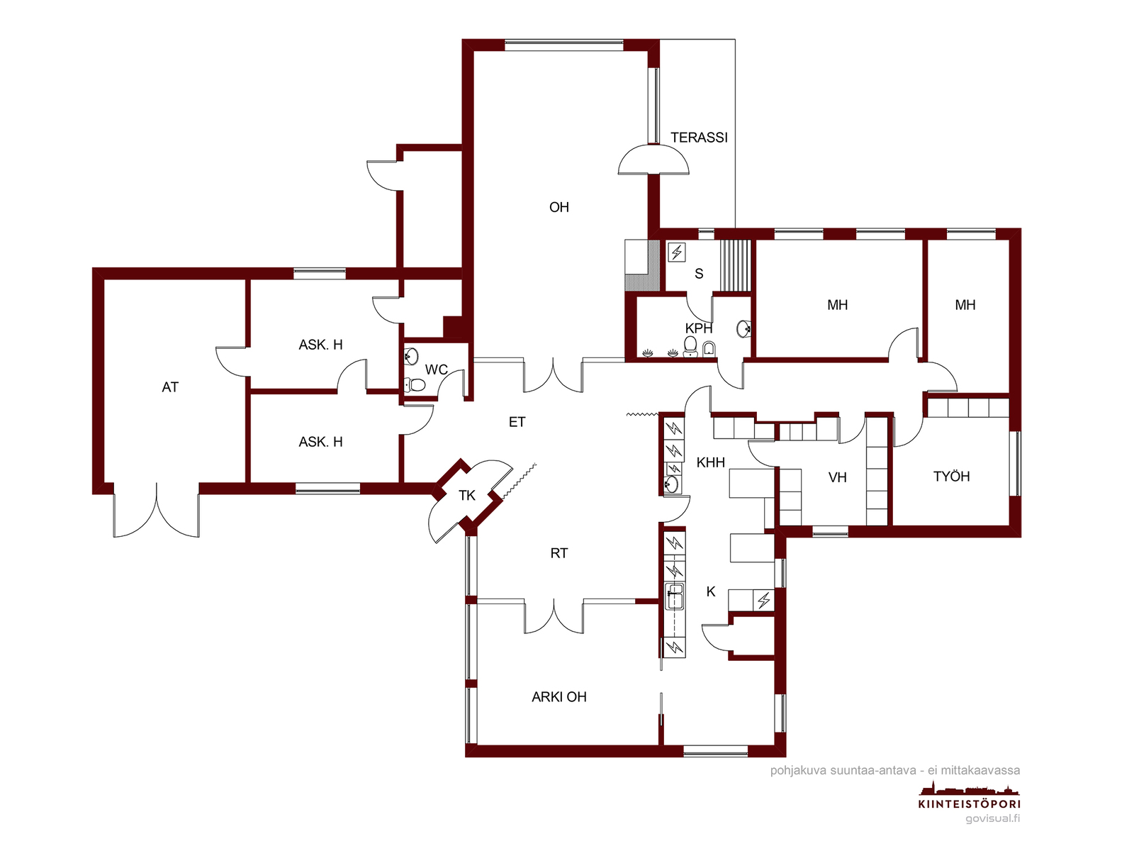 Lisätietoja pinta-alasta | Asuinpinta-ala n 220m2 ja kerrosala 280m2. Pinta-alatiedot ovat ohjeellisia ja saattavat poiketa oleellisesti suuntaan tai toiseen. Todellisen pinta-alan saa ainoastaan paikan päällä mittaamalla. |