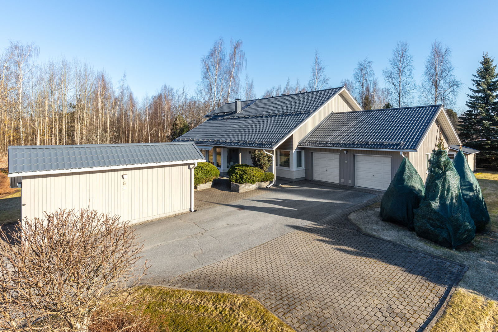 Arkea helpottaa tilava kahden auton talli, joka tarjoaa runsaasti säilytys- ja harrastetilaa. Oma 1496 m² tontti sijaitsee rauhallisesti päättyvän tien päässä, tarjoten turvallisen ja suojaisan ympäristön niin lapsiperheelle kuin rauhaa arvostavalle.