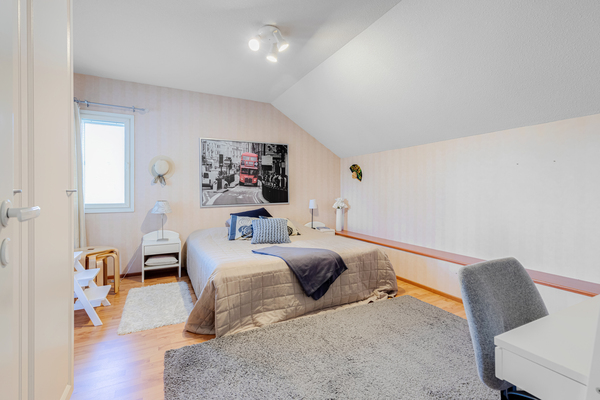 Kodissa on neljä makuuhuonetta, avarat ja toimivat oleskelutilat sekä näyttävä olohuone, jossa korkea huonekorkeus tuo tilaan upeaa avaruutta ja arvokkuutta. Varsinaisten asuintilojen lisäksi yläkerrasta löytyy yli 30m2 suuruinen vinttitila, joka soveltuu moneen. Tunnelmaa ja lämpöä luo keskeisellä paikalla oleva varaava takka, ja asumismukavuudesta sekä energiatehokkuudesta vastaa moderni maalämpö.