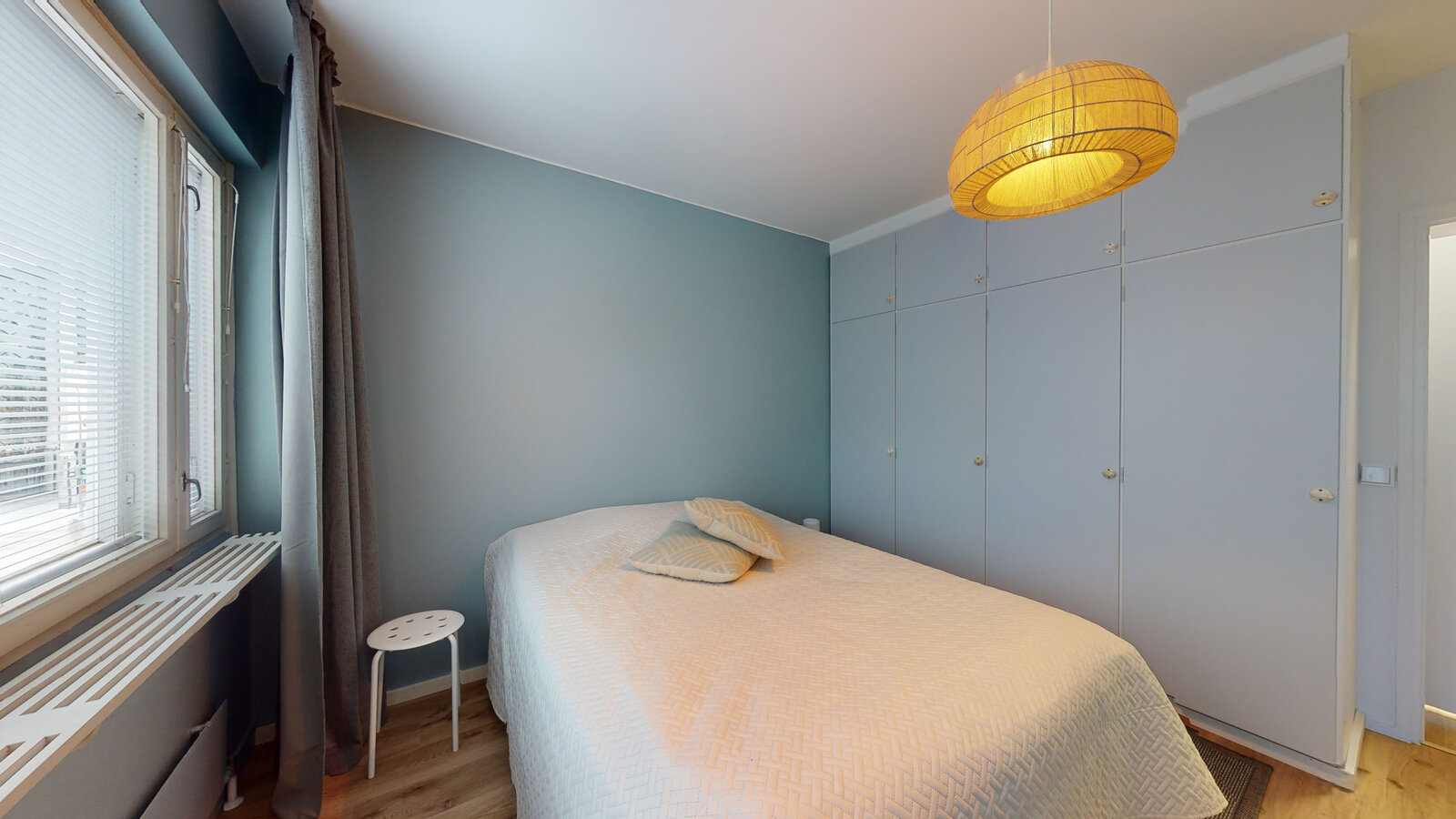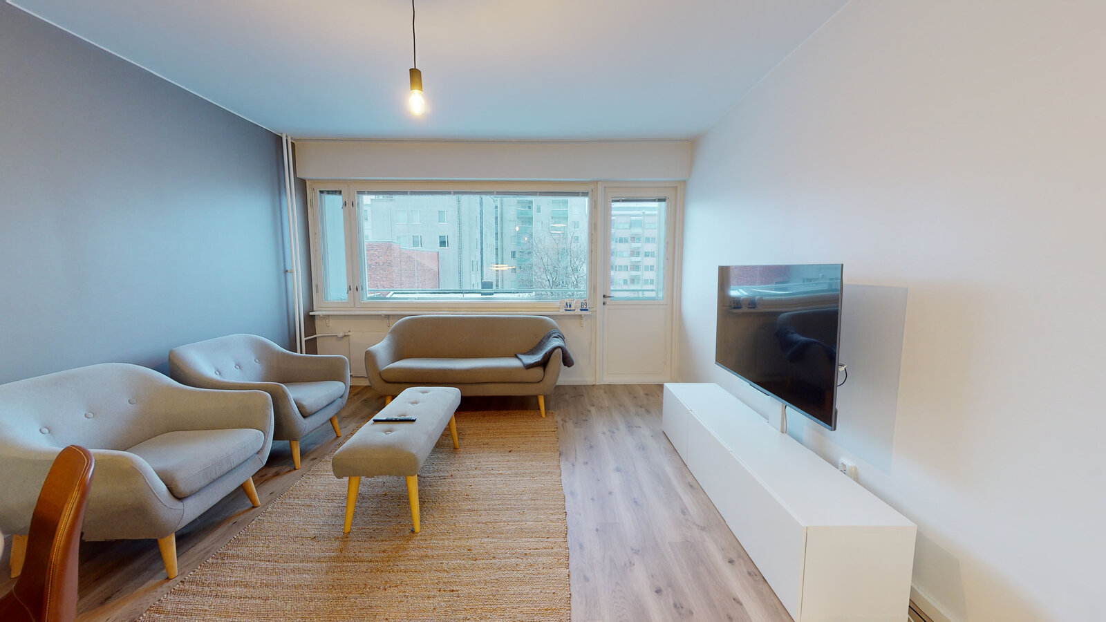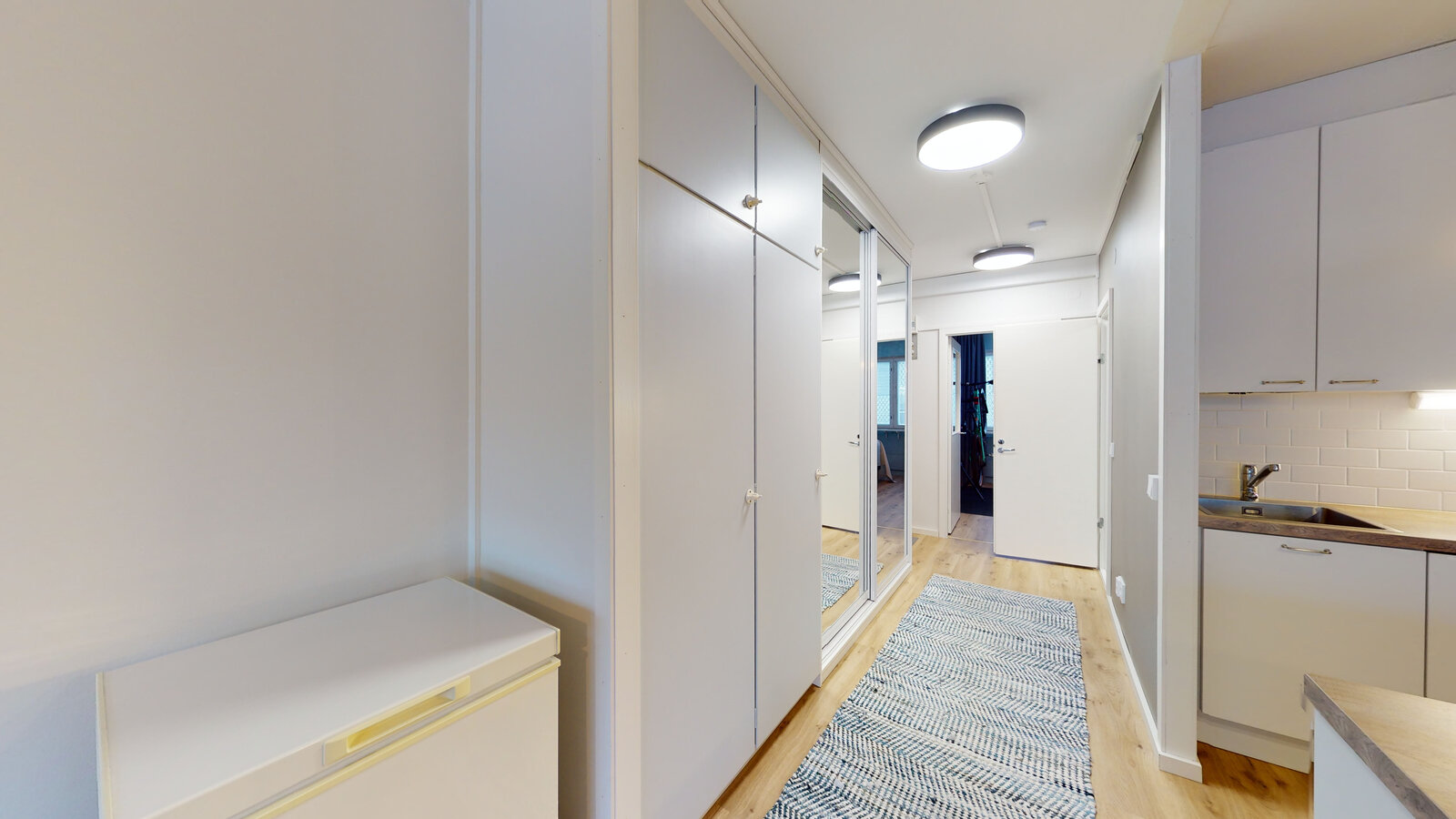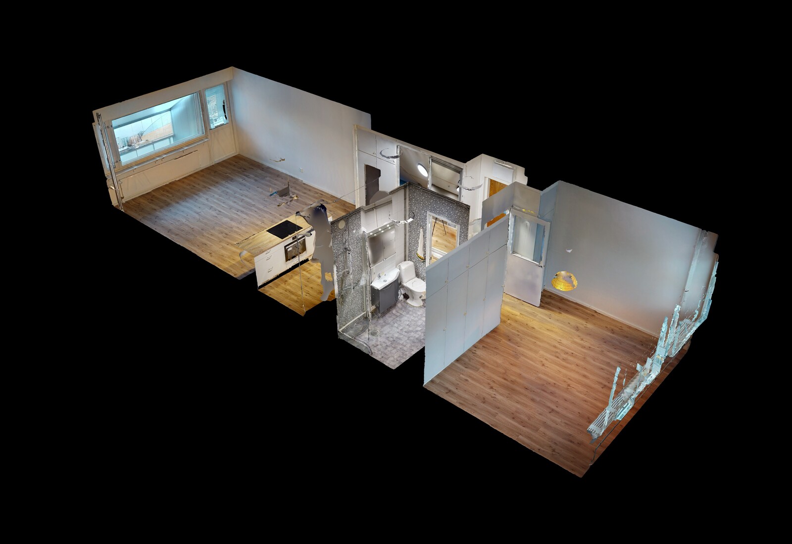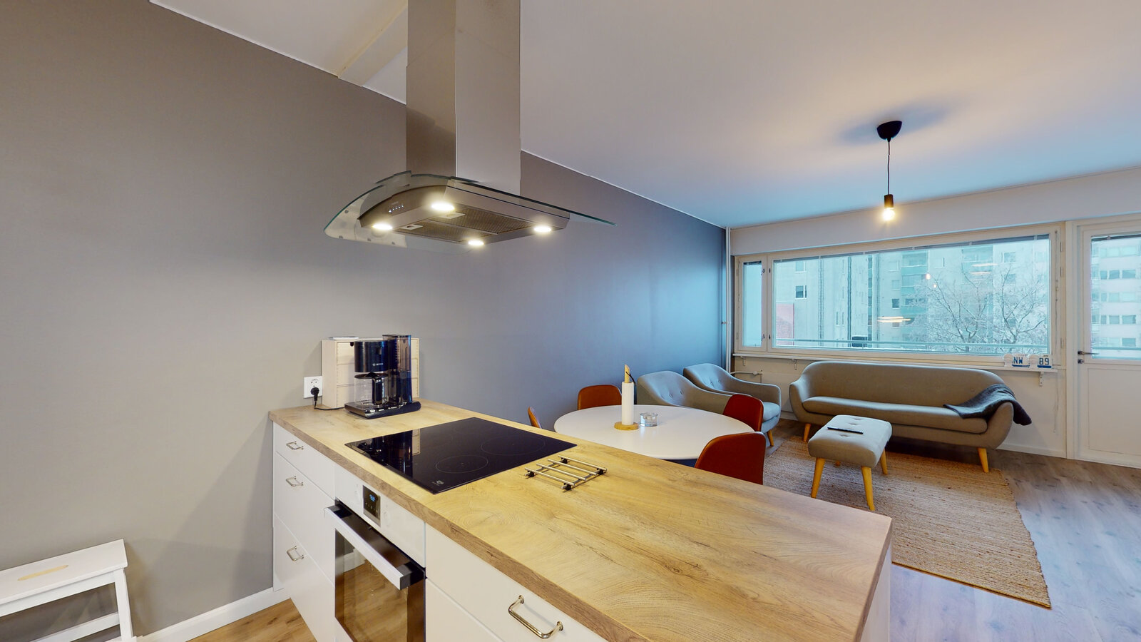 olohuone + avokeittiö + saareke, makuuhuone, suihkuhuone/wc, lasitettu parveke