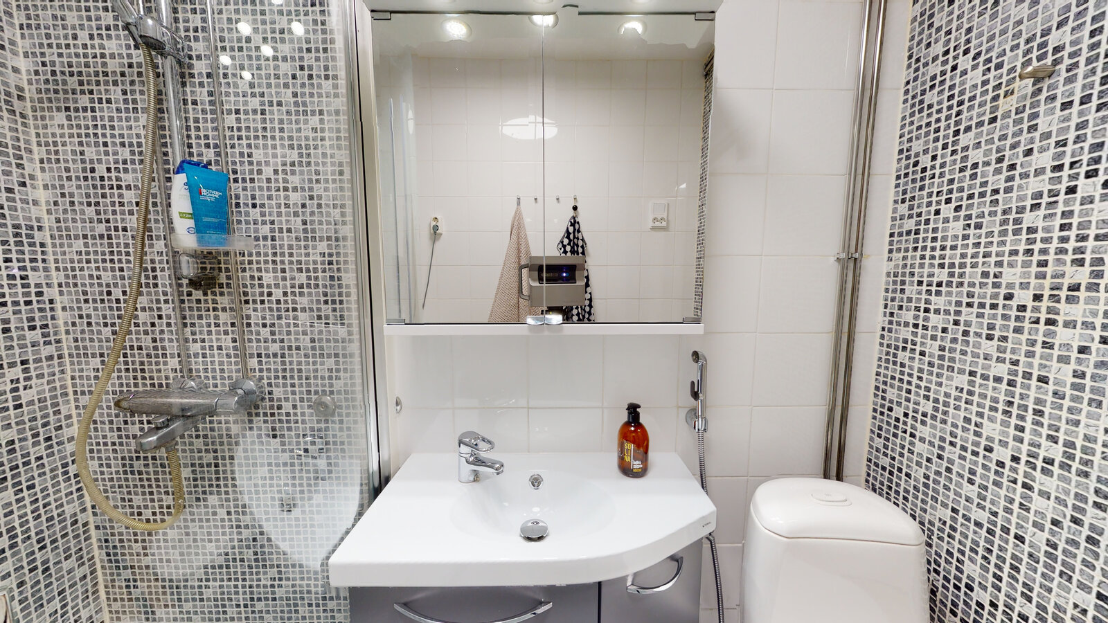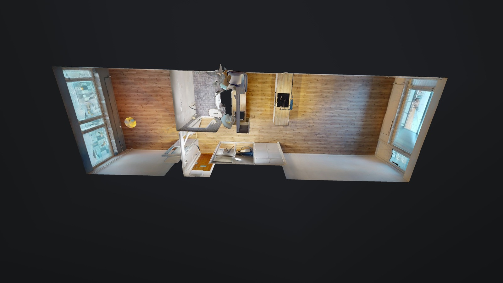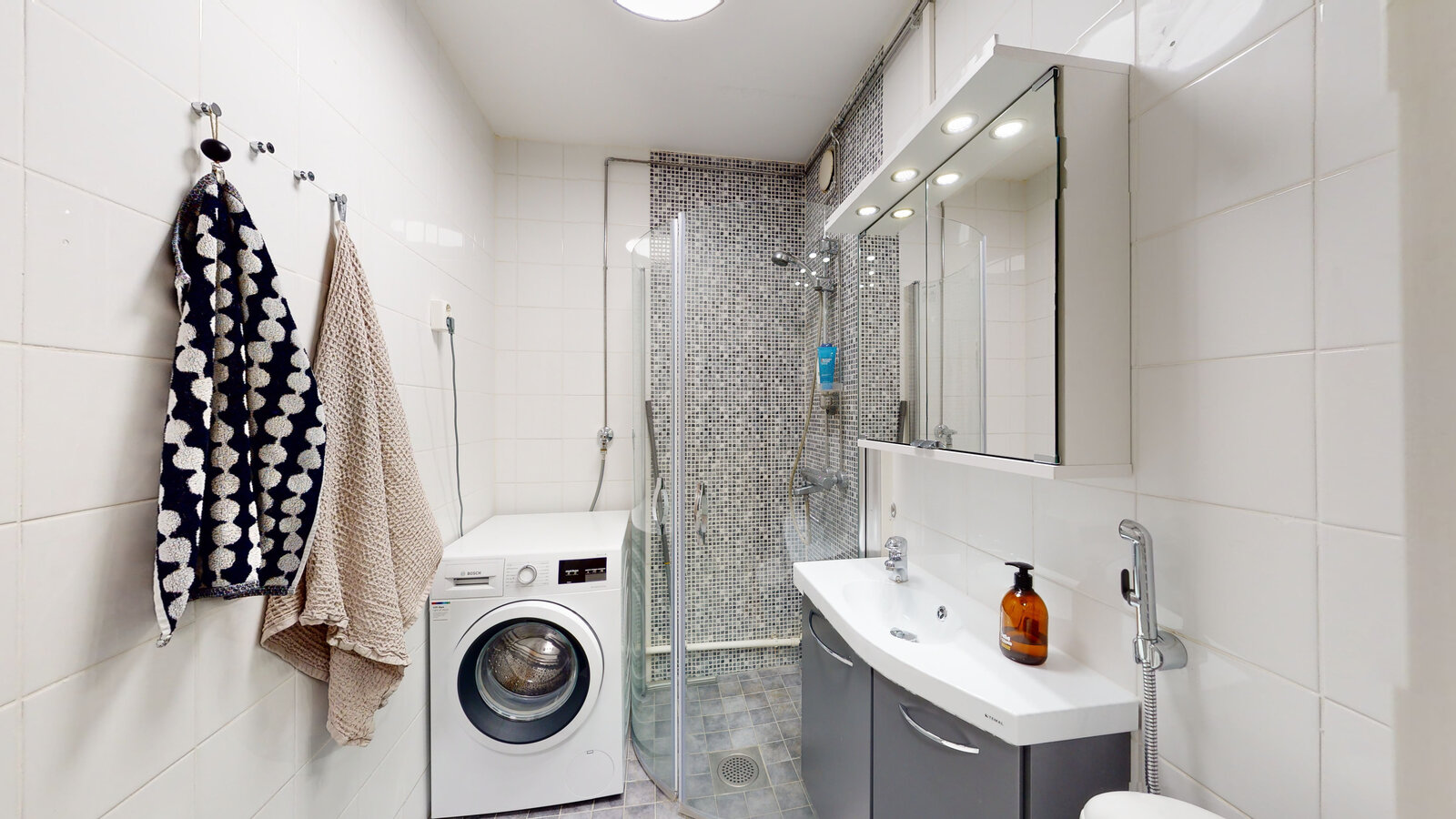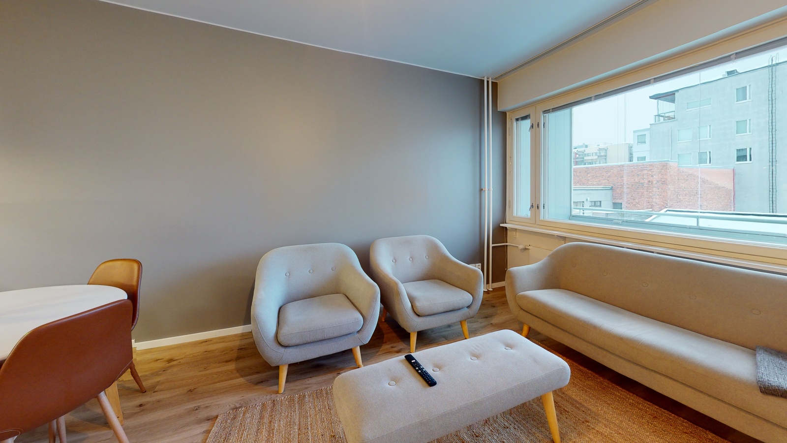 olohuone + avokeittiö + saareke, makuuhuone, suihkuhuone/wc, lasitettu parveke