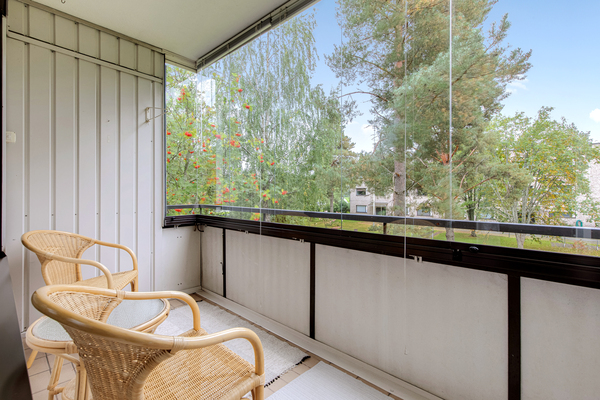 Läpitalon kaksio tarjoaa valoisat ja toimivat tilat- olohuoneesta on käynti lasitetulle parvekkeelle, jossa on mukava nauttia niin ammu- kuin iltahetkistäkin. Pesuhuone on laatoitettu ja käyttövesiputket on uusittu mikä tuo huolettomuutta tuleville vuosille. Lisäksi yhtiössä on paljon hyviä remontteja tehty vuosien varrella, joihin kuuluu mm vesikattoremontti ja ikkunoiden uusiminen.