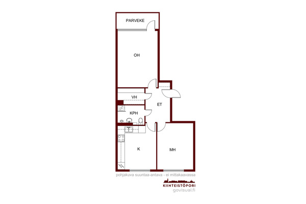 | Huoneiston kuvaus | 2h,k,kph + lasitettu parveke |